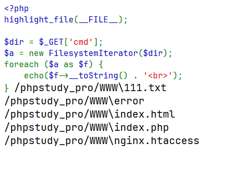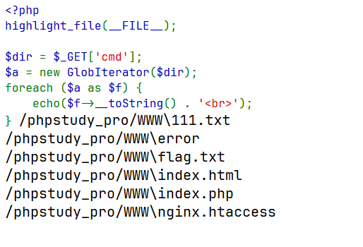 }http://127.0.0.1/index.php?cmd=glob:///phpstudy_pro/WWW/*