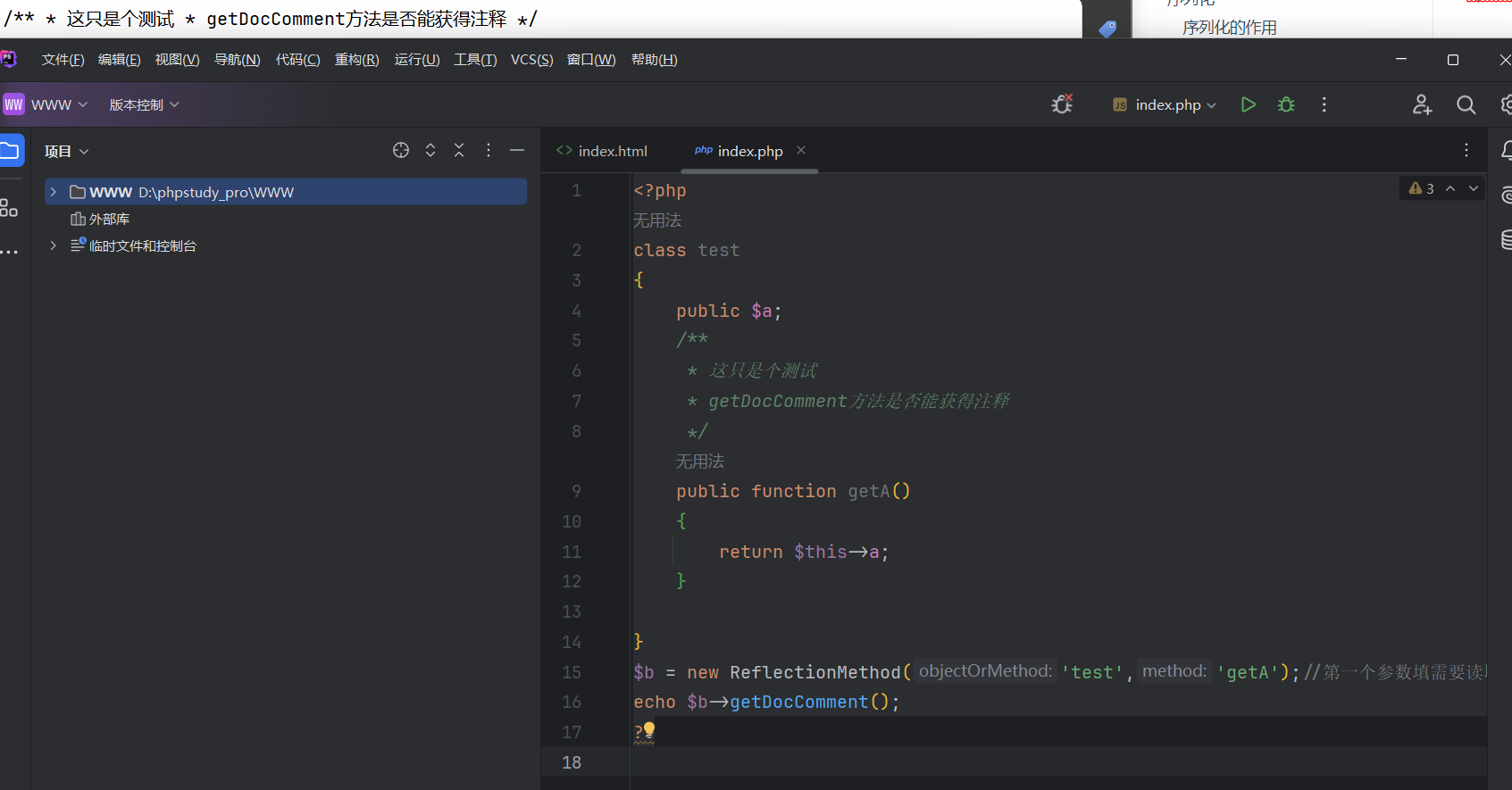 $b = new ReflectionMethod('test','getA');//第一个参数填需要读取注释的类名,第二个参数填类里面的函数名